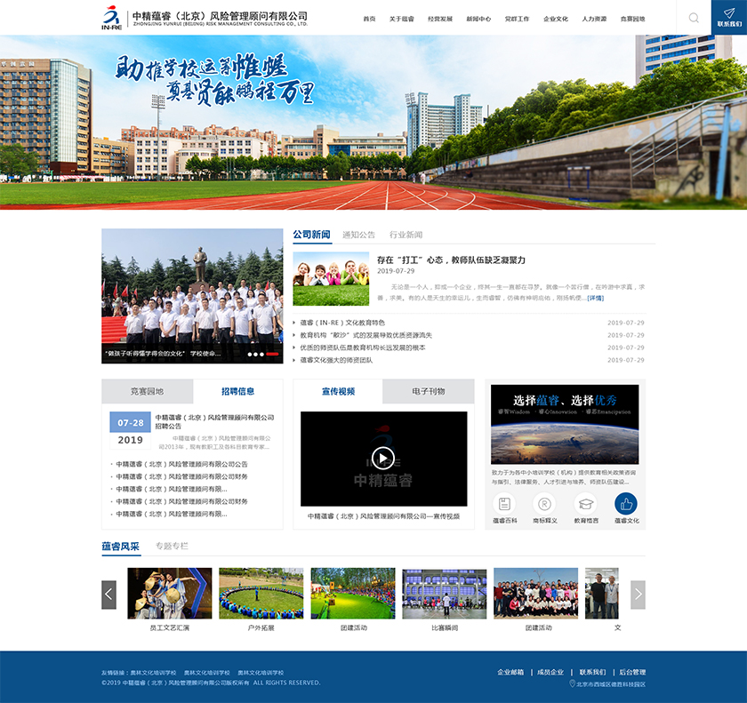Project Description 中精蕴睿(北京)风险管理顾问有限公司2013年,现有教职工及各科目教育专家80多人,致力于为各中小培训学校(机构) 提供教育相关政策咨询与指引、法律服务、人才引进与培养、师资队伍建设与培训、教学教研与学科创新、市场营销企划、文化 理念塑造与品牌输出的专业化教育管理全方位的综合服务。 Official website address 开封http://in-re.com/ I want to share